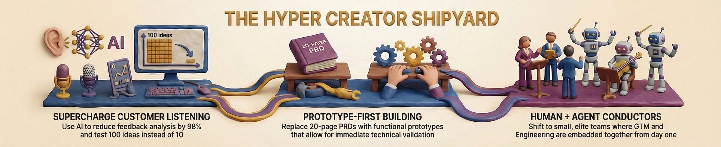Companies that win won’t just adopt AI tools—they’ll fundamentally restructure how product, engineering, and GTM work together. They’ll build shipyard teams that discover, build, and ship at the new speed standard.